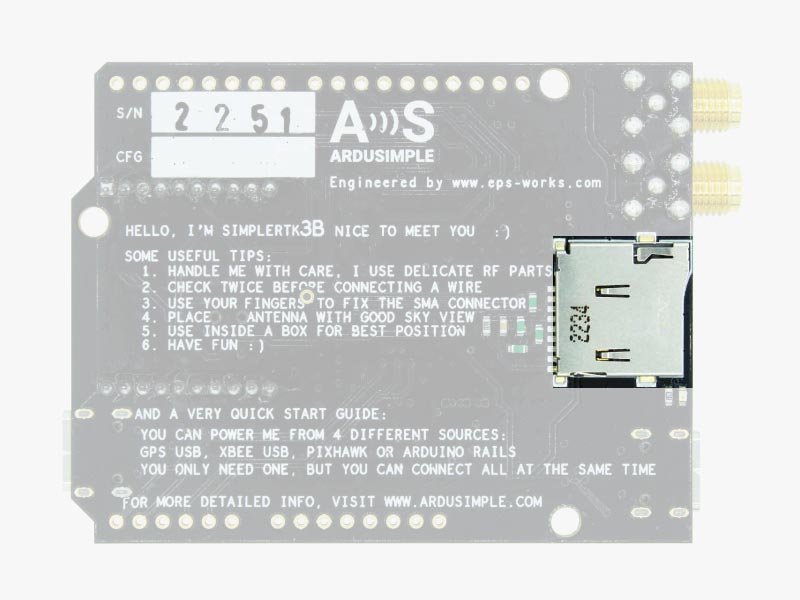 simpleRTK3B Heading incorporates a microSD card reader for data logging. You can configure the datalogging details from Septentrio’s web interface.