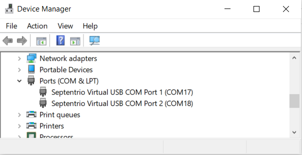 After installation, when you connect the receiver to the PC, you will see 2 new COM ports, that you can use with your favourite terminal tool to read NMEA or have full access to the Mosaic using RxTools.