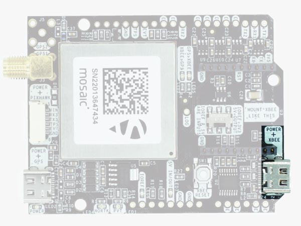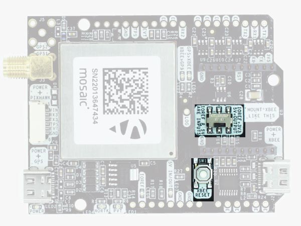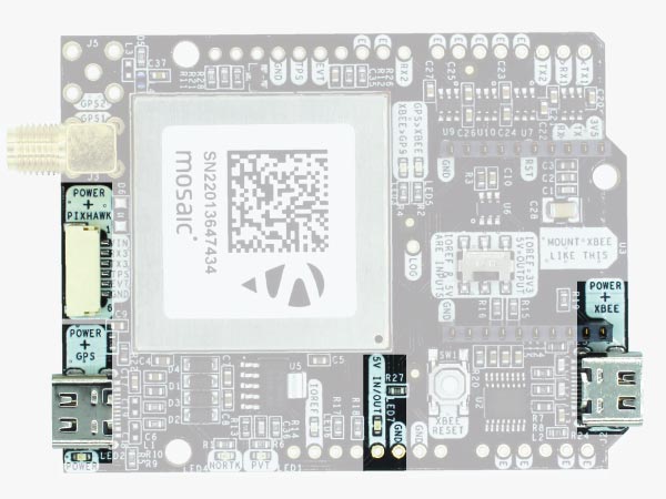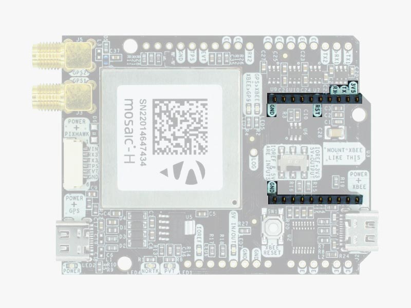 - RX2: XBee UART RX (this pin is also connected to Mosaic COM2 TX).