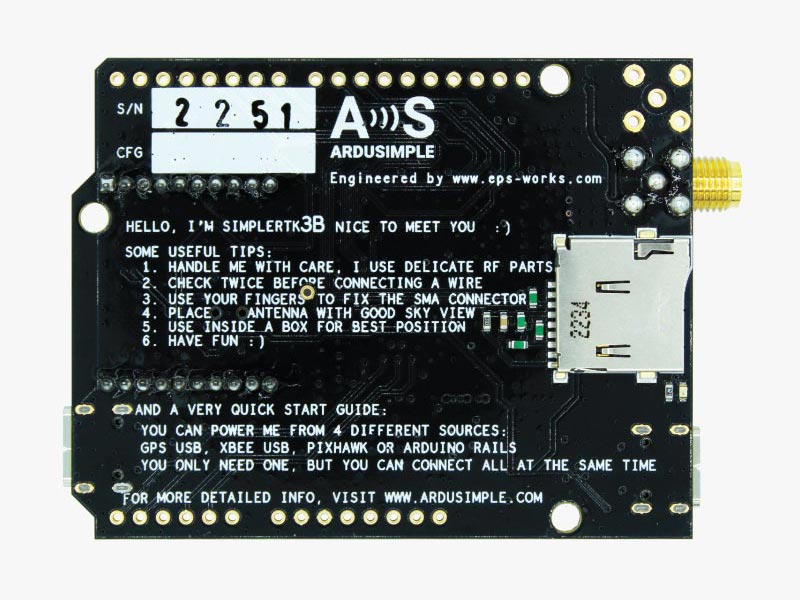 - Alternatively, you can now use simpleRTK3B Pro to power other shields. Just turn ON the switch “5V=OUTPUT” and simpleRTK3B Pro board will output 5V at this pin.